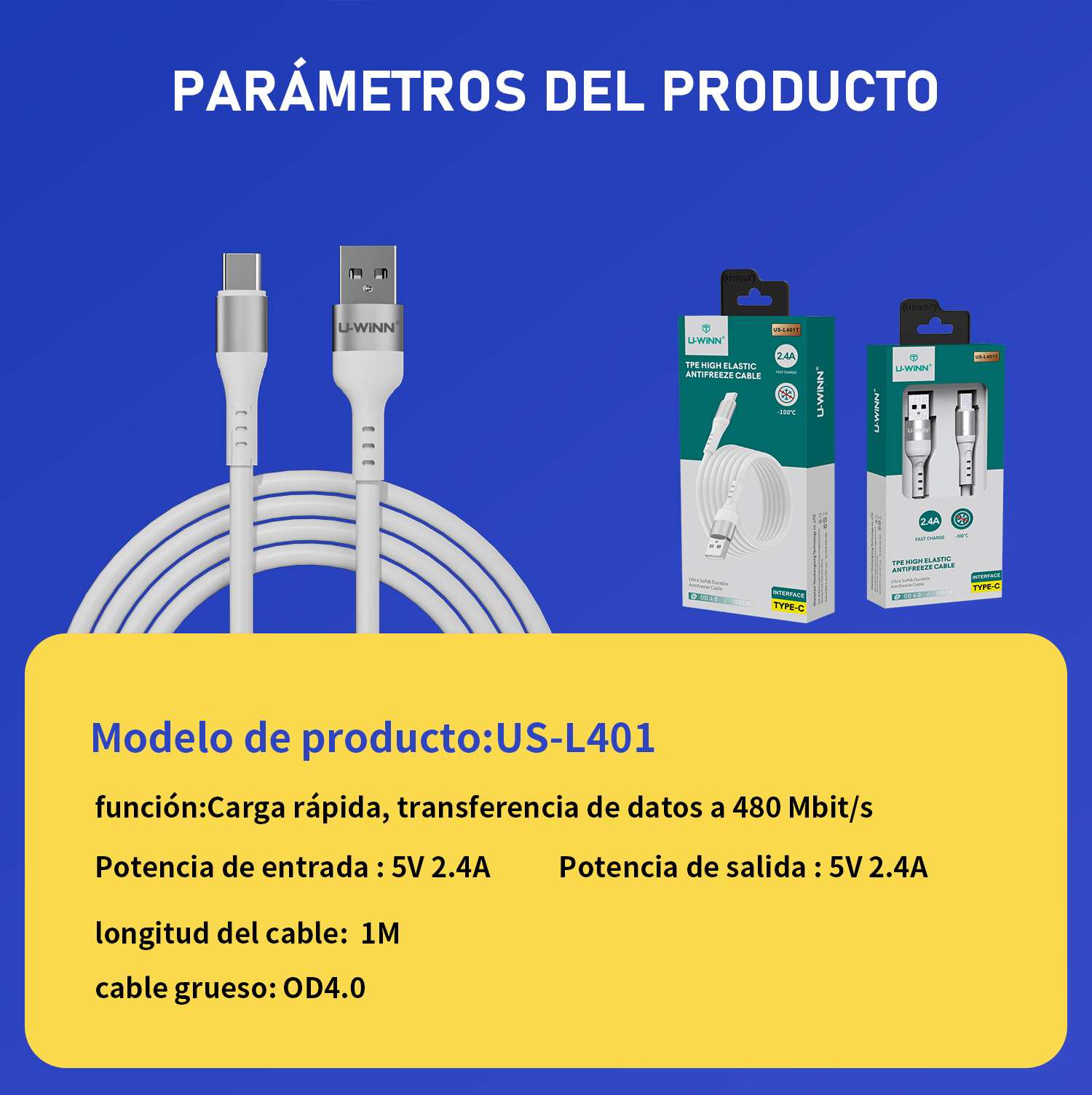 Cable para carga L401 USB-C Cable 2.4A 1M White USB 3.0 UWINN